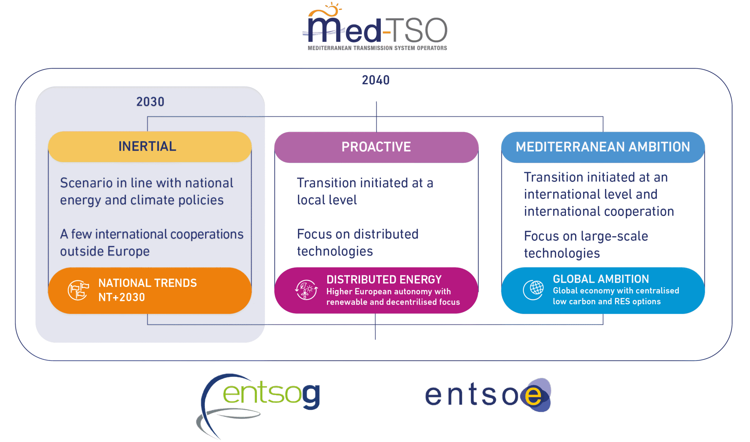 The scenario-building process implemented by Med-TSO is conceived as the foundation for assessing future energy requirements. It is designed to provide a quantitative basis for infrastructure assessment and network planning, thereby establishing a set of plausible futures against which system performance can be evaluated. In practice, scenarios are crafted to capture the dynamic uncertainties of the energy transition.